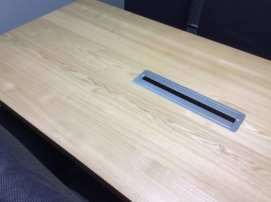 この度は、弊社からの特注製作にご対応いただきまして本当にありがとうございました。 本来なら一枚板でいきたいところでしたがコスト面からも厳しかったため、集成材でオーダーサイズ(2400×1000×40に仕上げて頂きましたが、 オイル塗装もさることながら全体の仕上がりにとても満足しております。当初、大判サイズの天板の反り防止のた めに幕板をつける予定でしたが、「座ったときの足元をすっきりとさせたい」というこちらの無理難題にもご対応頂き、幕板ではなく天板背面に反り防止を入れていただいたり、 天板中央に通線口を開けていただいたりと、本当にいろいろとありがとうございました。また別のオリジナル家具製作の際はどうぞ宜しくお願い致します。